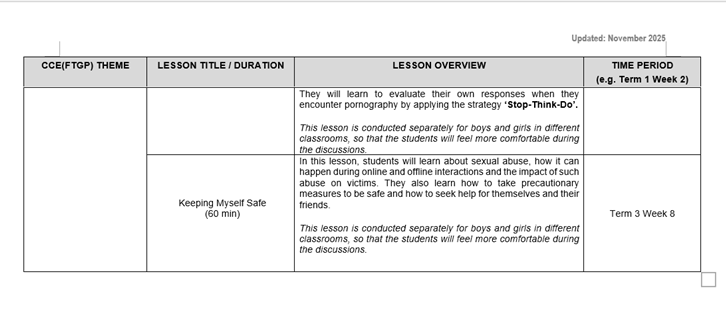 You may click here for more information on the scope of Sexuality Education in the school curriculum.